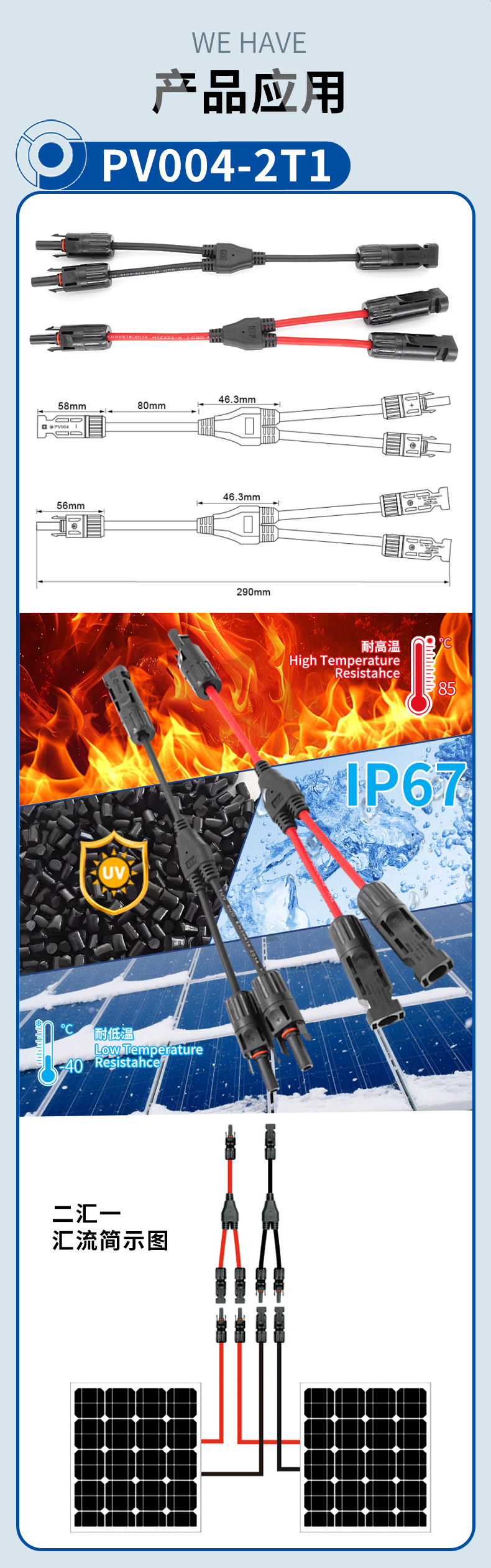 产品标准:IEC62852:2014 CE 额定电压:1000V DC 防护等级:IP67
