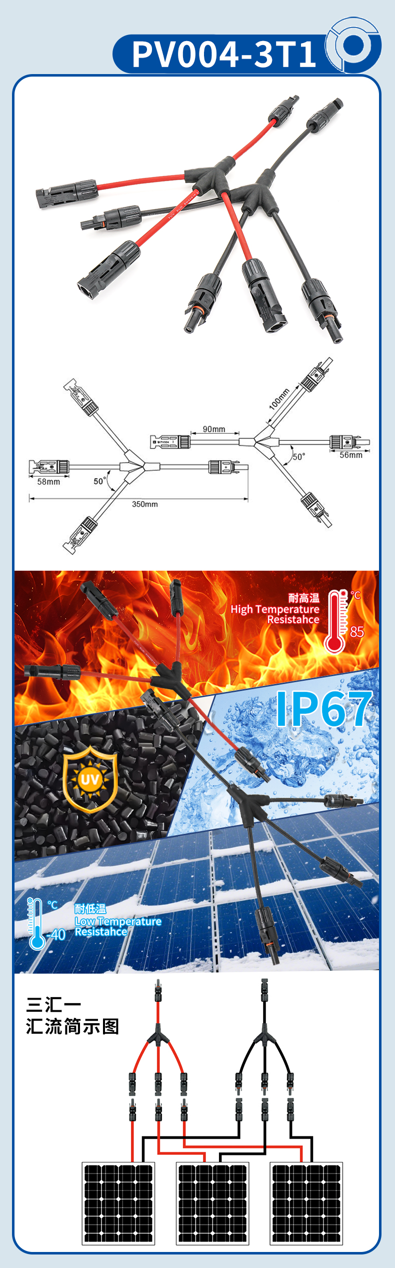 PV004-3T1三汇一Y型光伏连接器1000V