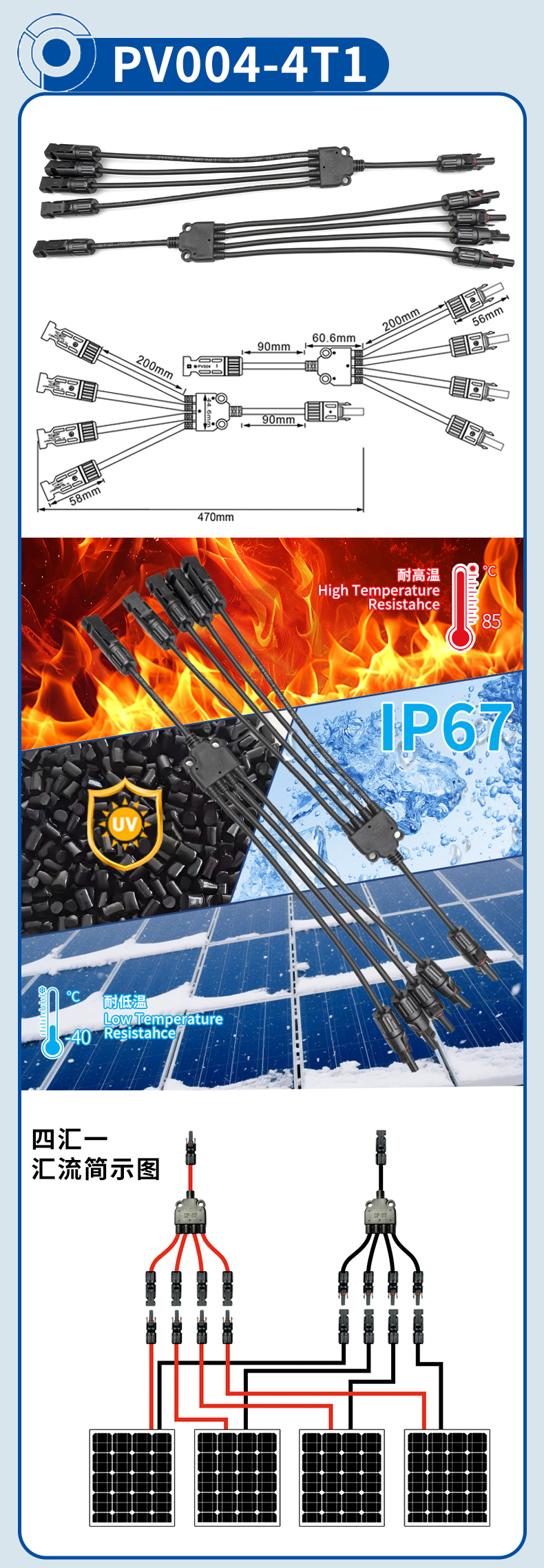 PV004-4T1四汇一Y型光伏连接器1000V