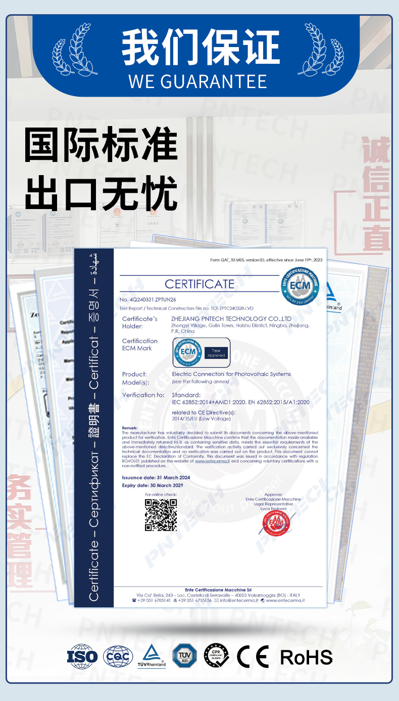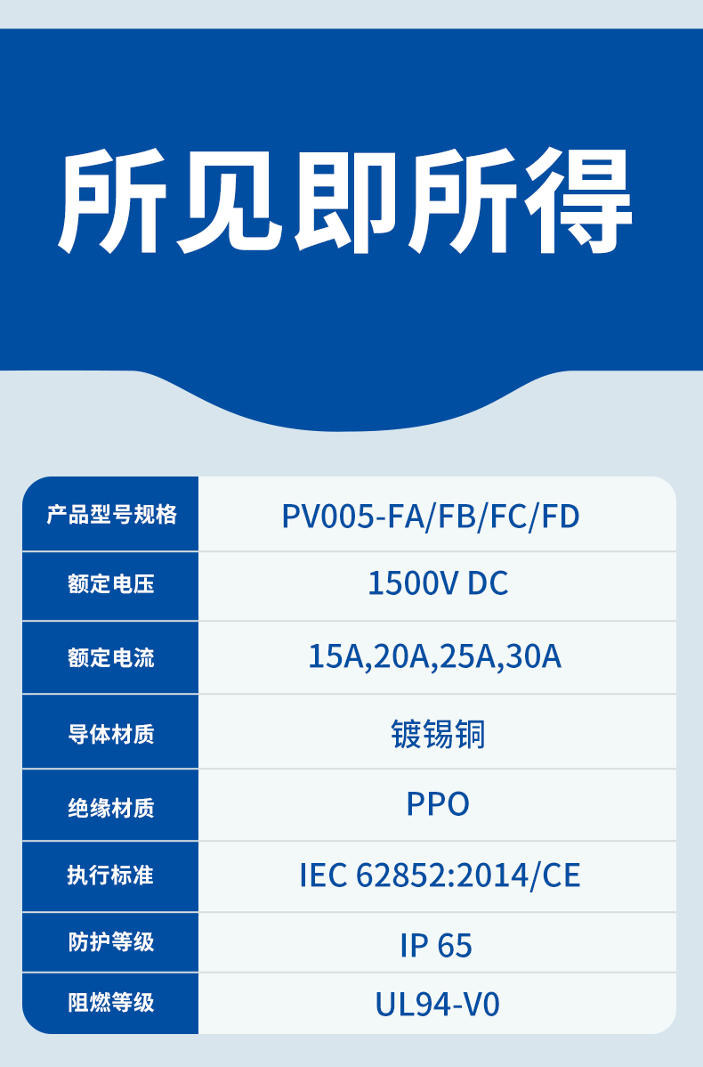产品标准:CE认证 额定电压:1500V DC 防护等级:IP65