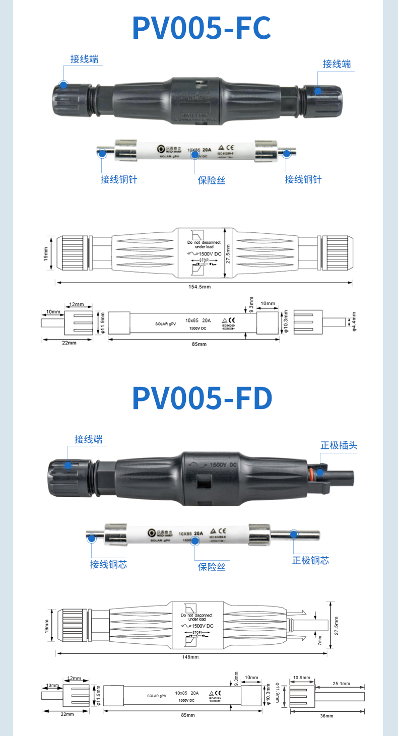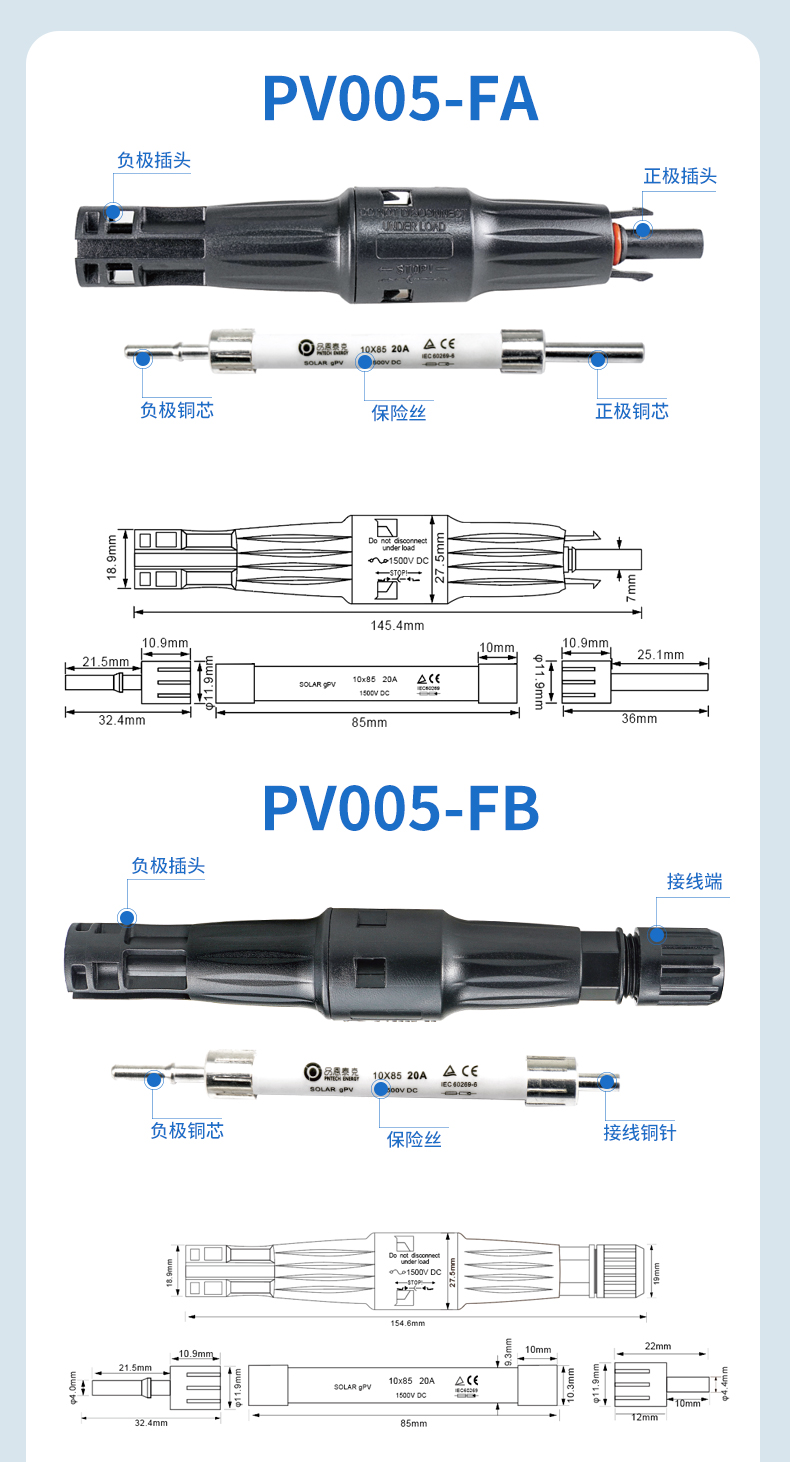 PV005-FA光伏保险丝连接器1500V