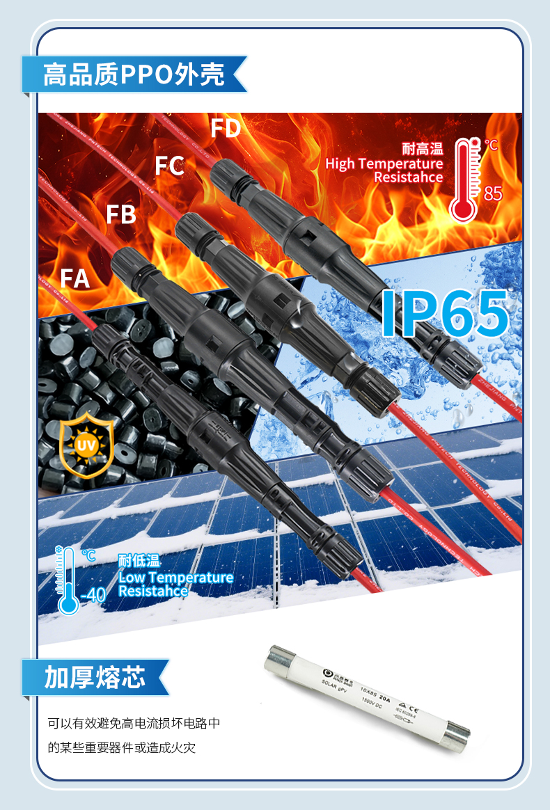 产品标准:CE认证 额定电压:1500V DC 防护等级:IP65