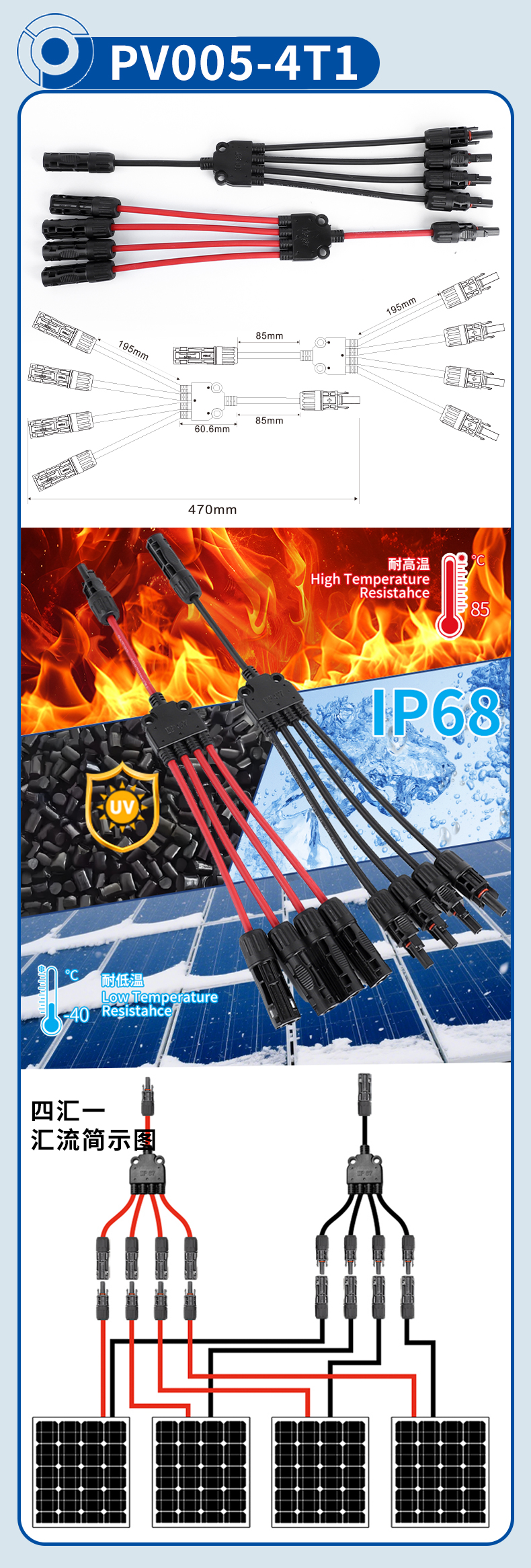 PV005-4T1四汇一Y型光伏连接器1500V